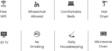 Our ADA accessible rooms also offer closed caption TV, flashing door knocker, lever handles on guest room doors, light switches at wheelchair height, roll-in shower, tactile/14-point signage, telephone TDD, TTY-compatible phone, viewport at wheelchair height, microwave, in-room temperature control, coffee/tea maker, hairdryer, TV with premium channels, bathroom amenities, alarm clock, AM/FM radio, desk, iron, ironing board, shower/tub combination.